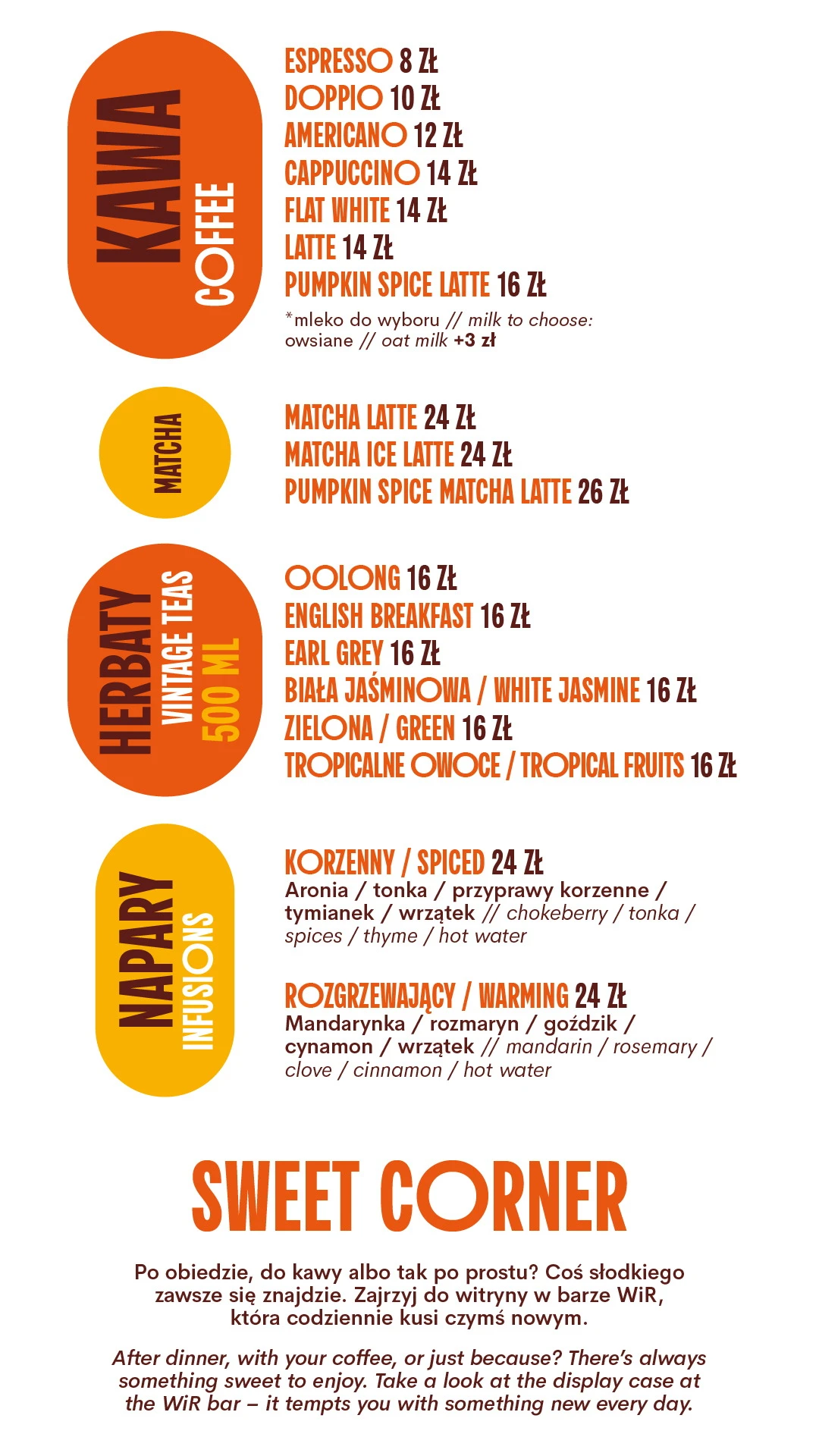 Ważna sprawa - zamówienia z barów złożycie bezpośrednio w barze Wir i Wena lub u naszych kelnerów. Po dania z restauracji ruszacie sami - tu obowiązuje samoobsługa.