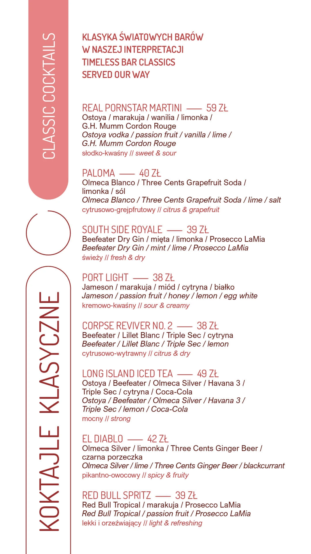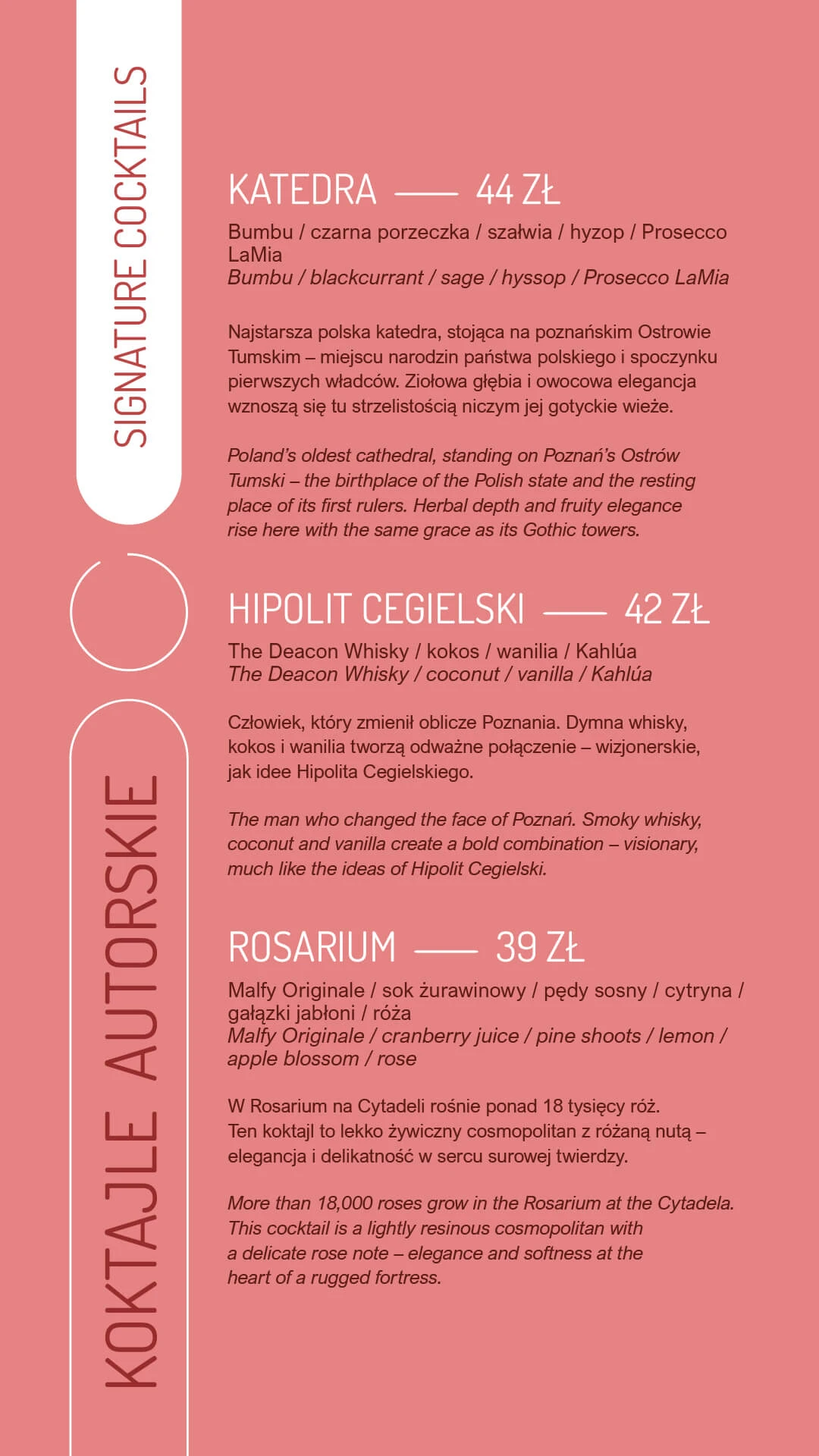 The first floor of Kulinarna Kamienica has earned its own name – Welur. It’s a place where the relaxed atmosphere of a bar meets the elegance of Art Nouveau interiors. During the day, Welur invites intimate conversations, while in the evening it transforms into a mood-lit cocktail bar – where time slows down and every meeting gains a special touch.