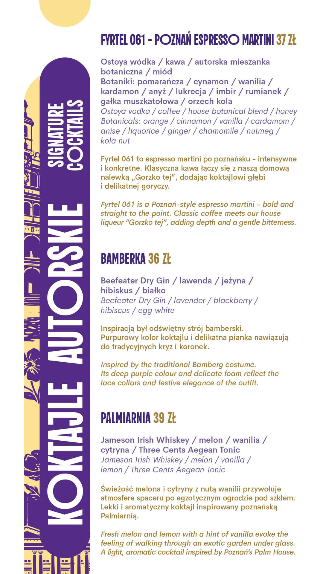 This is our very first cocktail menu – an invitation to take a stroll through our flavorful fyrtels, where classic meets creativity and a touch of imagination.