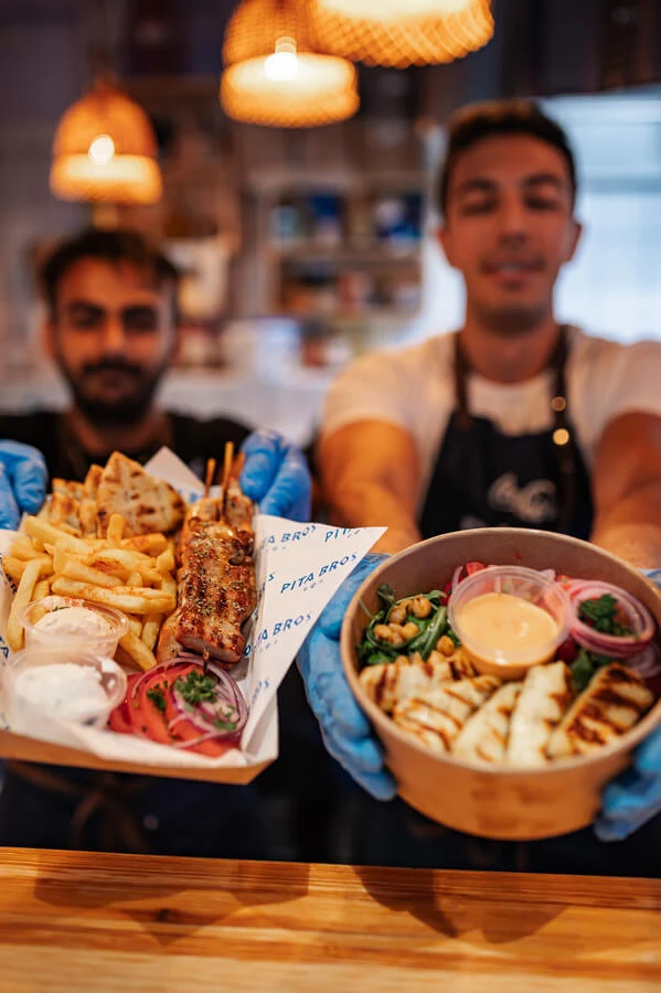 Za Pita Bros stoją Georgios i Beniamin Vafidis – synowie znanego szefa kuchni Teo Vafidisa. Ich pasja do kuchni śródziemnomorskiej przerodziła się w pomysł na miejsce, które łączy autentyczność greckich smaków z nowoczesnym rytmem miasta. Z każdym kęsem gyrosa, souvlaki czy świeżej sałatki przenosisz się do słonecznej Grecji – tam, gdzie zapach oregano miesza się z aromatem grillowanego mięsa, a jedzenie jest synonimem radości życia.